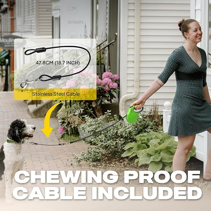 - HEAVY DUTY, DURABLE & STEADY - This Green retractable dog leash is made of 16ft high strength nylon tape with big durable rustproof swivel hook and steady impact-resistant ABS material, suitable for Large dogs or animals up to 110 lbs. Top durability Internal Coil Spring for Consistent Retraction several years.