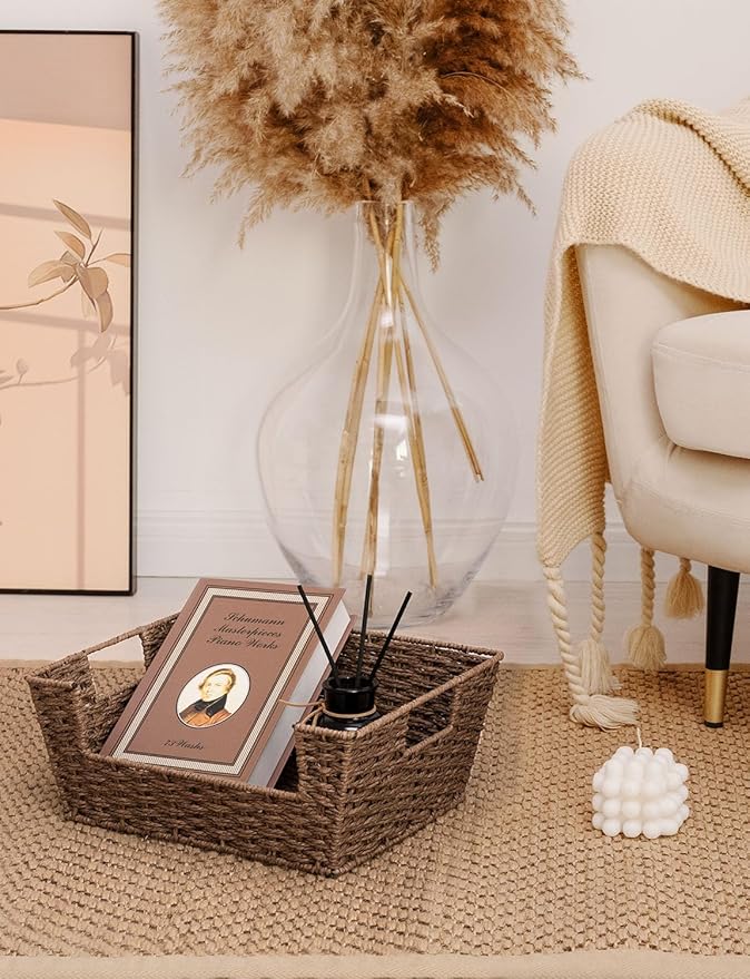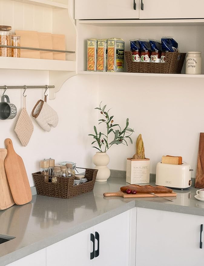StorageWorks Round Paper Rope Woven Basket for Pantry Organizers and Storage, Stackable Pantry Storage Baskets for Shelves, Brown, 2-Pack