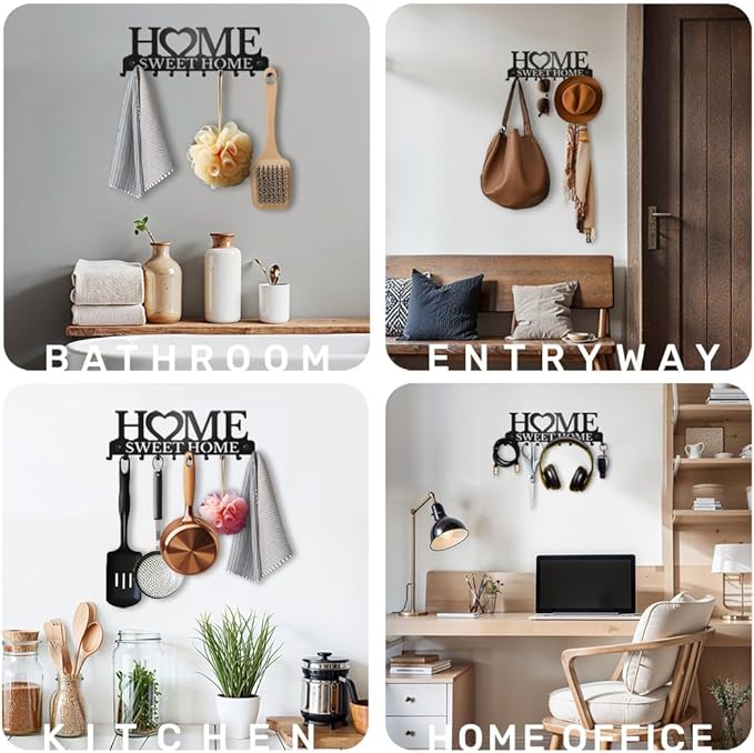 - Unique Design: 'Home Sweet Home' cool wall key holder enhances your interior. Adds personality to entryway, hallway, living room, farmhouse or college decor. Modern, neutral yet decorative