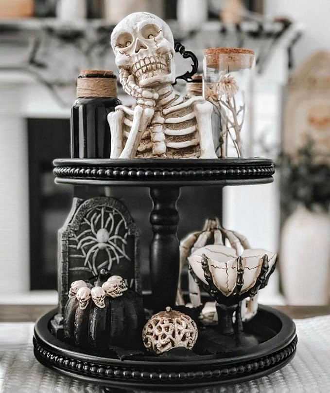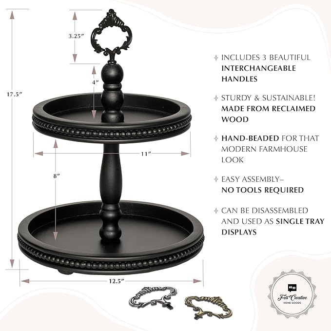 - πͺ΅πͺπΎ ELEGANT FARMHOUSE DECORATION - Add some charming decor to this 2 tiered decorative tray and use it as an ultimate two tier decorative tray, designed to fit perfectly into modern, rustic, or farmhouse interiors. Use this round tiered display stand for entertaining and for everyday organization. This elegant wooden tray for decor has a timeless appeal that complements any decor style. Display and organize with elegance using this black tier tray decor.