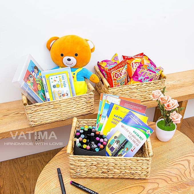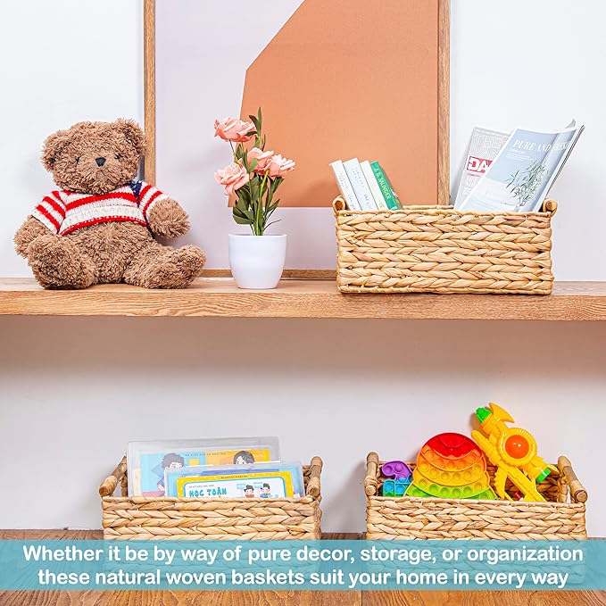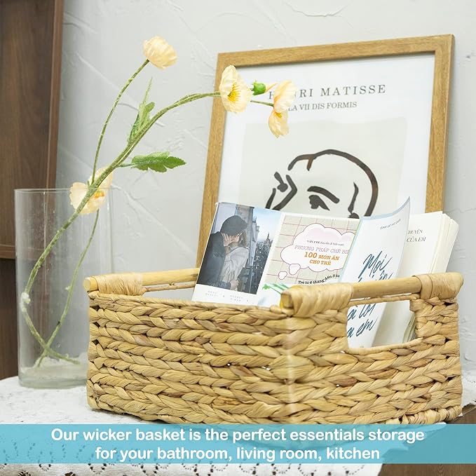 - ✅ Convenient and Attractive - Whether it be by way of pure decor, storage, or organization for kitchen, pantry, or bathroom. This natural baskets with handles suit your home in every way. The rectangular baskets wicker is great for magazines, games, pet toys, media, household items.