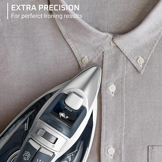 - SAFE AND PRECISE IRONING: Enhance convenience with a steam iron with automatic shut off function, anti-drip protection, and precision tip for detailed ironing in hard-to-reach areas