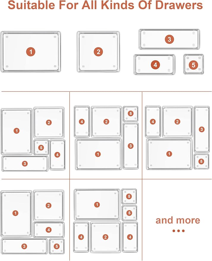 - Save your Times - Clear drawer organizers can save your time to organize and find your stuff, it’s easy to find and use your items in the drawer, keep your space neat, help you get a neat lifestyle and enjoy more.