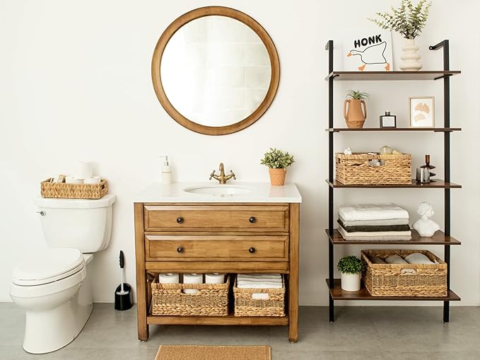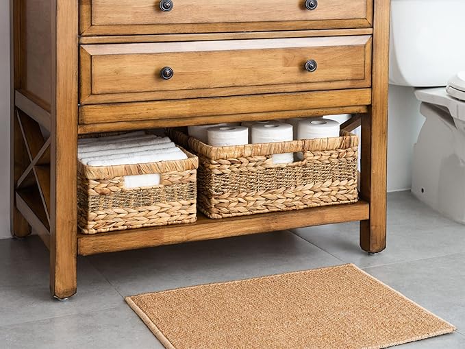 StorageWorks Jumbo Rectangular Wicker Basket, Water Hyacinth and Seagrass Storage Basket with Built-in Handles, 1 Pack