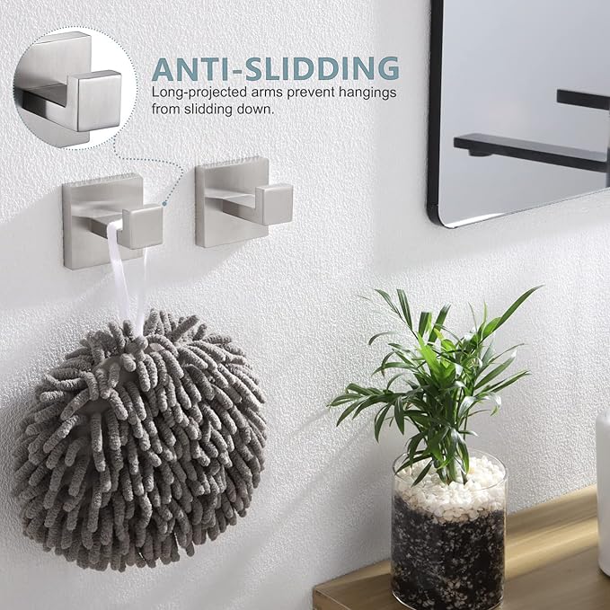 KOKOSIRI Bath Towel Hook Wall Mount Square Robe Hook Coat Hook, Bathroom Kitchen Garage Heavy Duty Wall Mounted, SUS 304 Stainless Steel, Brushed Nickel, B1010BR-P2