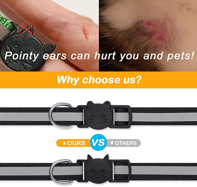 - 【Safe Cute Collar Buckle】These fashionable collars have a cute cat design. Compared with other ear designs, our ears are sleek and safe. Most of the ears on the market are sharp and easy to hurt cats.