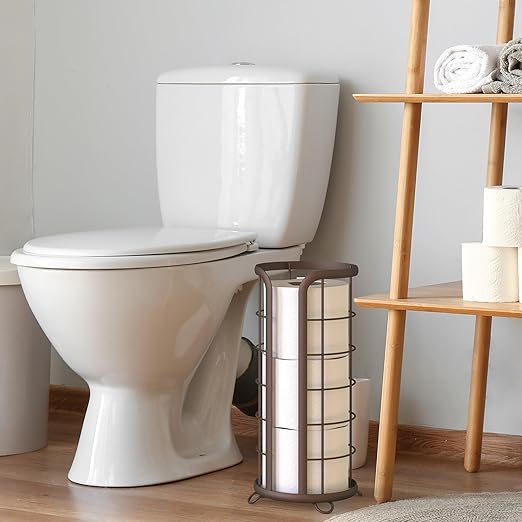 - HOLDS MEGA ROLLS - This freestanding toilet paper holder is the perfect storage solution for your bathroom or lavatory. Raised feet are featured on this unit which keeps your toilet paper off the bathroom floor, ensuring it is clean and dry.