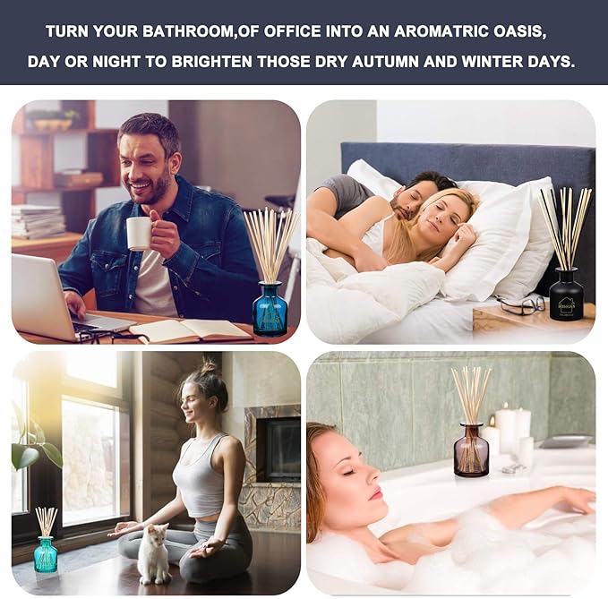 - ✿【EASY TO USE】Simply place your essential oils with your required scents and diffuser reeds in the glass diffuser bottles and wait for the scent to diffuse and can release fragrance slowly to fresh the air.