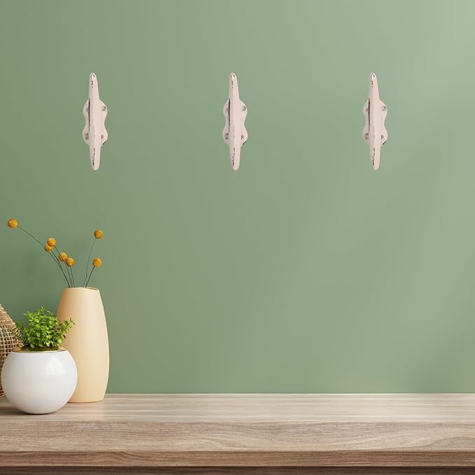 Wowser Nautical White Cast Iron Boat Cleat Wall Hooks, 3.5 Inches, Set of 3