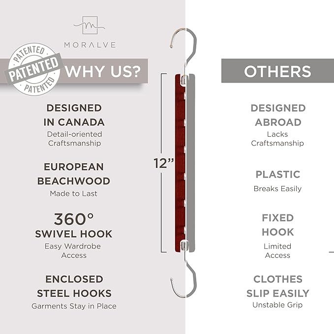 - PREMIUM QUALITY BEECH WOOD - Our beech wood gives you a durable and sturdy clothes hanger organizer built to last. Thanks to rigorous testing our t shirt hanger organizer holds strong and will not not bend or collapse like plastic space saving hangers thanks to our quality crafted beech wood material.