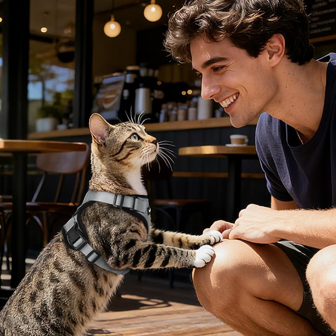 - Designed for Safety - The sturdy back D-ring anchors the leash, distributing pressure safely across the chest and shoulders instead of the fragile neck, reducing the risk of suffocation. This kitten harness features bright reflective strips to keep your cat safe and visible during nighttime walks.