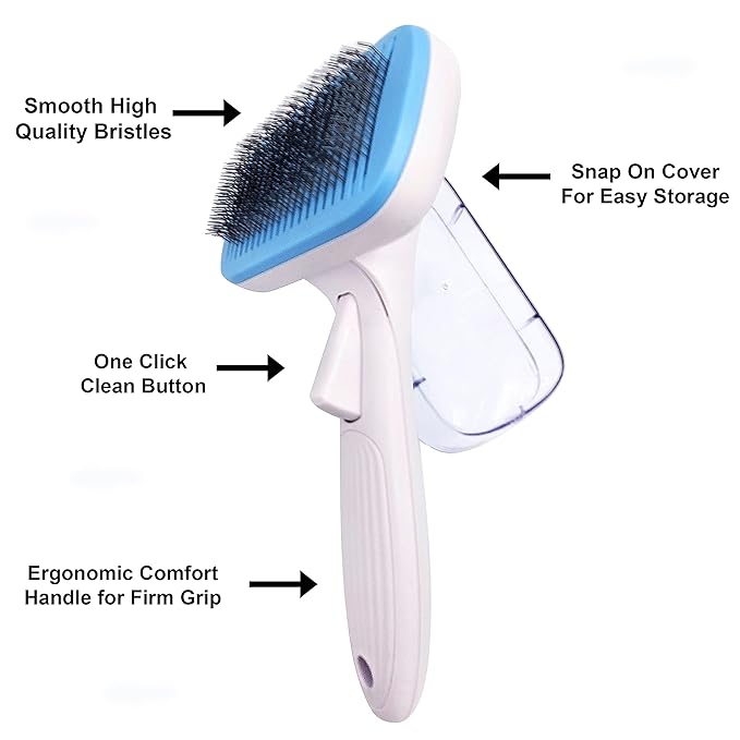 - EASY TO CLEAN DOG BRUSH - This self cleaning slicker brush has a great feature that allows you to CLEAN YOUR PET’S FUR in the most efficient and effortless way. After brushing, simply press the button and the retractable bristles return to their place and the hair is released, leaving you mess-free!