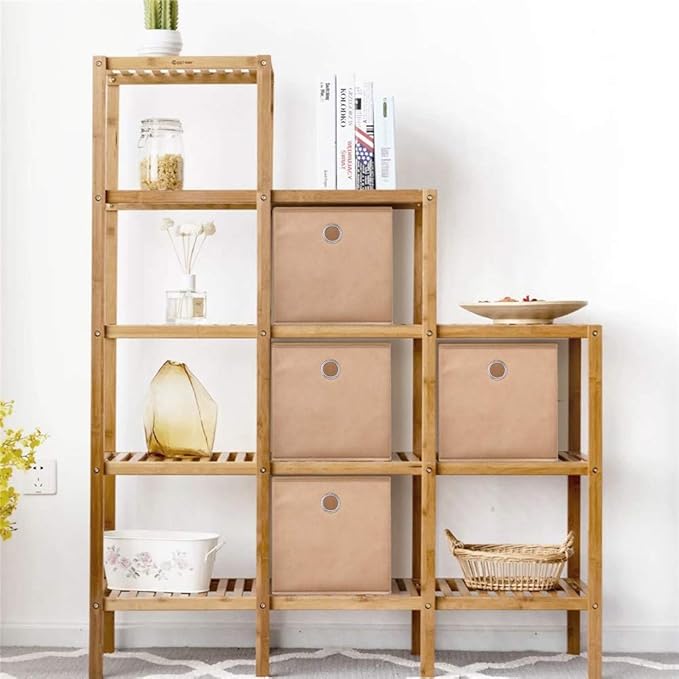 HSDT6 Cube Storage Bins Beige 11x11x11 Inch Foldable Fabric Storage Basketes for Home Organizers Storage Drawer,QY-SC19-6,Alpaca(Set of 3)