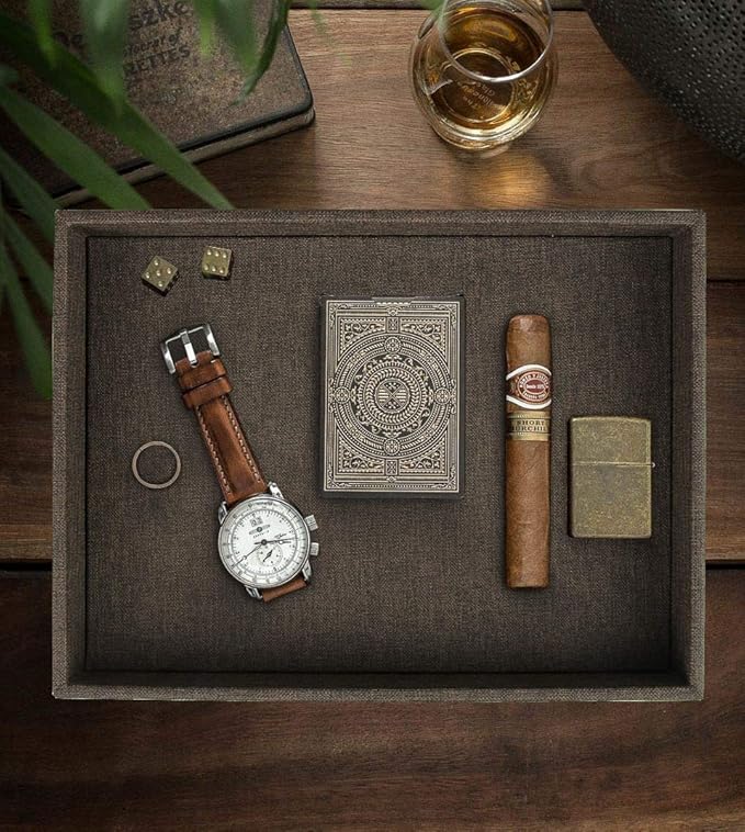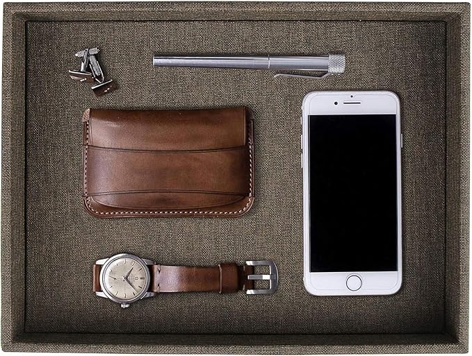 HofferRuffer Elegant Desktop Organizer Tray, Vanity Tray, Storage Jewelry Perfume Organizer, Dresse Catchall for Change Coin Key (Brown Black Faux Leather)