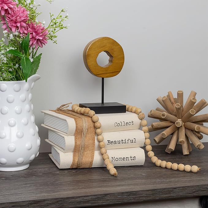 AuldHome Design Faux Book Stack: Collect Beautiful Moments Decorative Book Set w/Burlap Ribbon Wrap