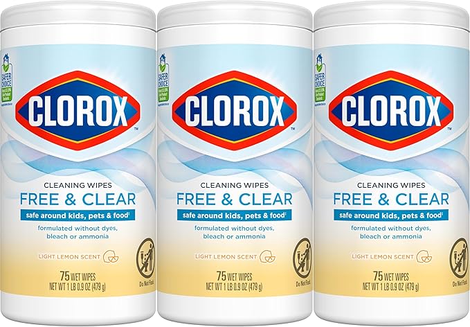 - FAMILY FRIENDLY: Clorox Free & Clear Cleaning Wipes are formulated without dyes, bleach or ammonia to get the surface clean you want from the brand you trust