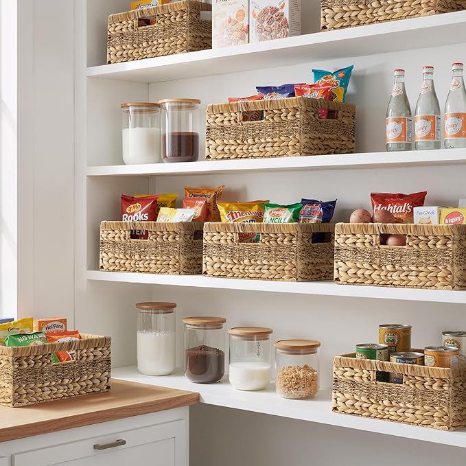 StorageWorks Large Rectangular Wicker Basket, Water Hyacinth and Seagrass Storage Basket with Built-in Handles, 1 Pack