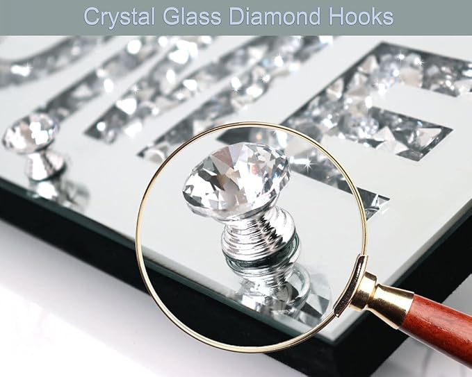 - Distinctive Design : Exquisite engraving and Bevel Edging, Diamond-shaped in HOME, Smooth Glam Crushed diamond, Crystal diamond handle hooks, Beautiful and fashionable.