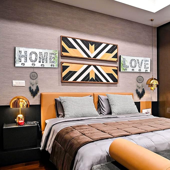- DECORATIVE ACCENT : Beveled Silver Mirror with Crushed Diamond HOME Shape and 4 Crystal clear diamond hooks provide an extremely attractive look of HOME, Modern exquisite style that fits in with a variety of interiors home decoration. Perfect elegant stylish decor for wall decoration, Art Deco style. Best for Gifting.
