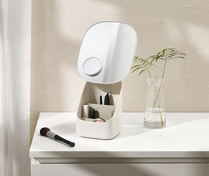 Joseph Joseph Viva Makeup Cosmetic Storage Organizer, Large with Mirror, Shell