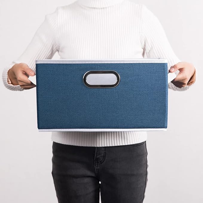 - 【Fashionable Bins】Designed to match interior decor and style in any room in the home or office. Enjoy the relaxing ambiance of the soft royal blue and natural white neutral color scheme.