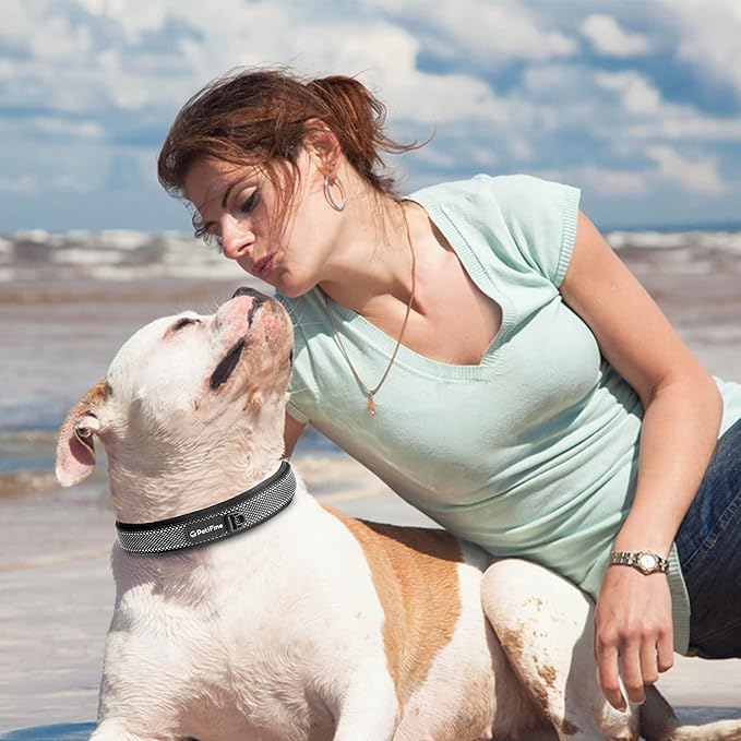 - πΆ β NEOPRENE PADDED INNER β Our collar is lined with a soft neoprene padding that will protect your dog's neck from irritation when being active. This unique feature provides cushion and improved traction for maximum comfort during higher-level activities