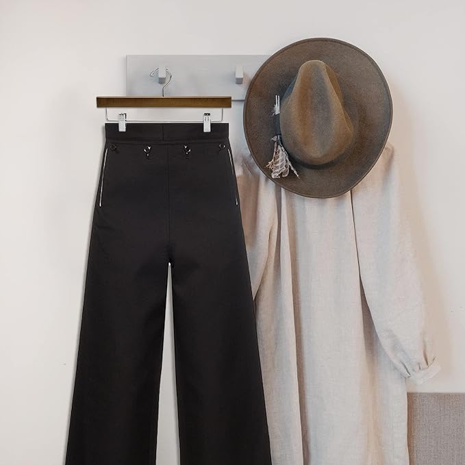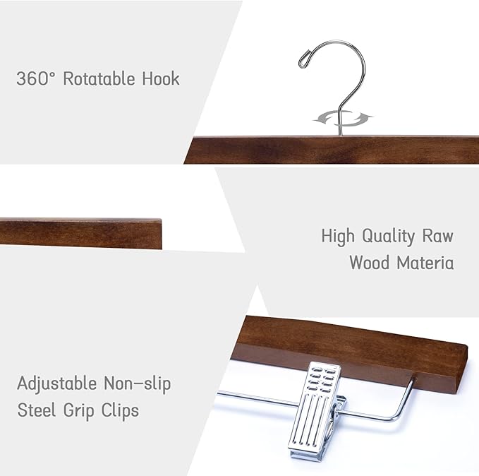 Nature Smile Wooden Pants Skirt Trousers Hangers with Clips (10Pcs Retro)
