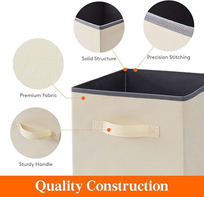 Lifewit Collapsible Fabric Storage Cubes Bins Set 11 Inch, Foldable Cubby Organizers Boxes, 6 Pack Organizing Baskets for Shelf, Closet, Utility Room, Storage Room, 18L Beige