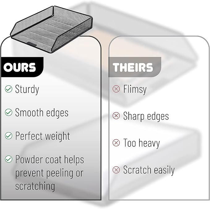 - Package includes 1 mesh desk organizer, ideal for holding Letter/A4 size paper, folders, books, bills, mail forms, catalog sheets, stationery, and magazines.