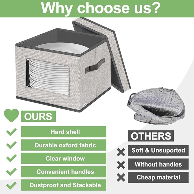 - 【Durable Material】: These China Storage Container are made of premium 300D Oxford fabric and sturdy thick cardboard. The felt dividers could keep the dish or plate from breaking.