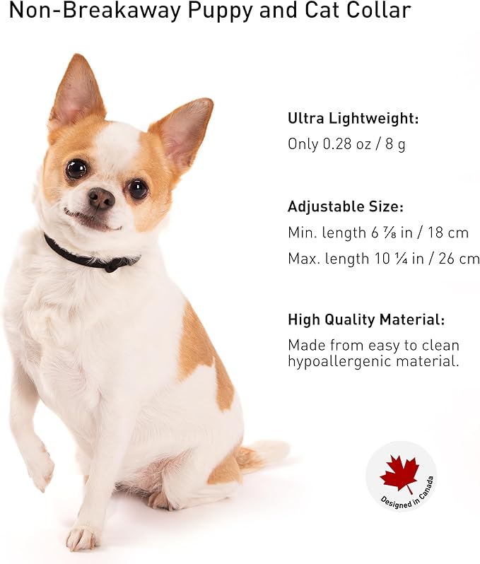 - Achieve the perfect fit effortlessly. Our quick-fit buckle offers easy adjustment, with a 3/8" width and neck size range of 6 ⅞ - 10 ¼", tailored for puppies, miniature dogs and cats. See sizing chart image for guidance.
