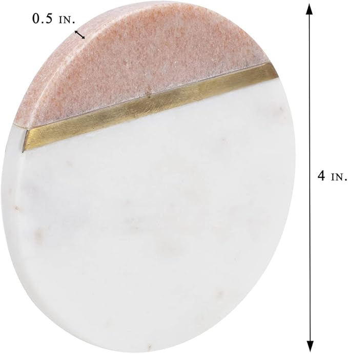 - Set of 4 Round White & Different color Marble with Brass Inlay