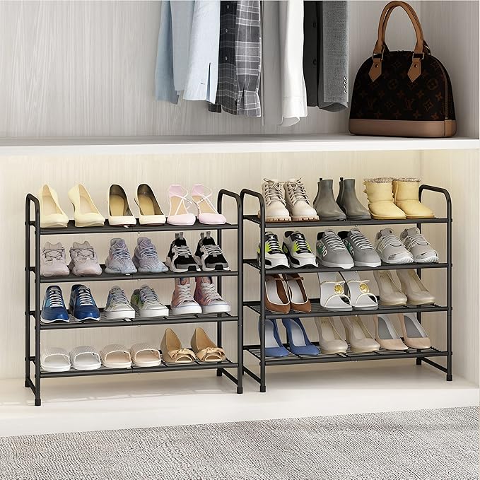 Simple Trending 4-Tier Stackable Shoe Rack, Expandable & Adjustable Shoe Organizer Storage Shelf, Wire Grid, Black