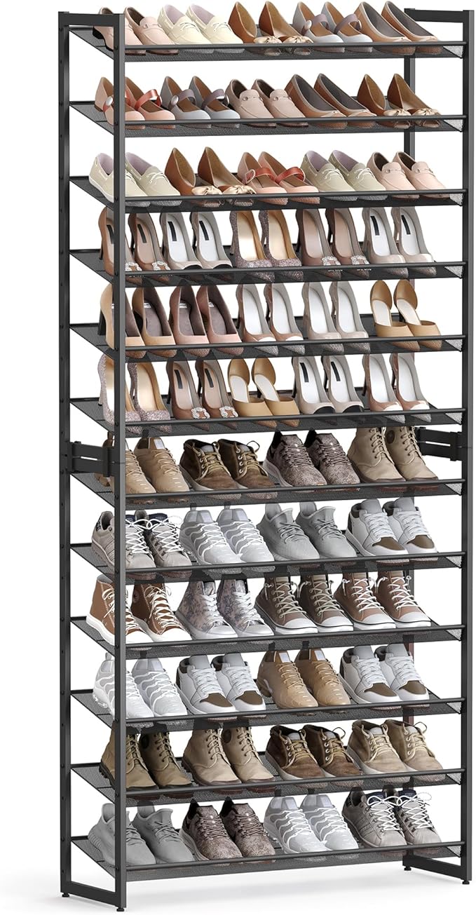 - [Large Capacity] Sized at 12.1" x 36.4" x 87.8", this large 12-tier shoe organizer can hold 60 pairs of women's shoes or 48 men's shoes, taming the shoe piles scattered here and there