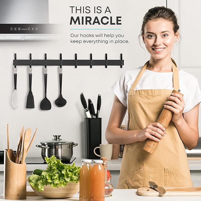 - ✅【8 Double Hooks for Maximum Storage】Features 8 durable double hooks (16 hanging points), perfect as a coat and hat rack, wall hook organizer for jackets, towels, scarves, robes, bags, and keys.