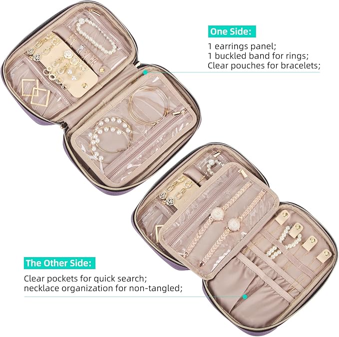 - WELL-ORGANIZED -With designated areas for earrings, rings, necklaces and bracelets .This jewelry case will keep you organized on the go and keep all your precious jewels in order