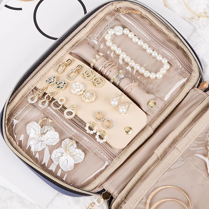 - SEE ALL THE JEWELS AT A GLANCE-Multiple transparent pvc pockets allow you to find the jewelry you want to wear today at a glance