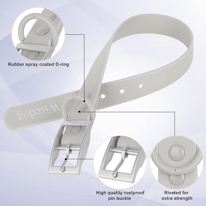 Wisedog Waterproof Dog Collar, Adjustable Soft Rubber Coated Webbing, Odor-Proof and Easy to Clean for Small Medium Large Dogs, with Airtags Case(S|8.5"-12.5" × 4/5 in, Gray)