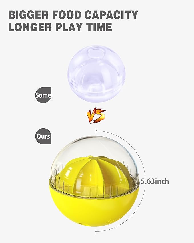 - Eating with Playing: Rolling to dispense food and make squeaks, treat toy can keeping a dog engaged and interested, after you put kibble in the treat dispensing dog toys, it can entice your dogs to push it around the home to self play until it’s empty, our dog treat dispenser toy is funny to offer food and helps with his entertainment for quite awhile