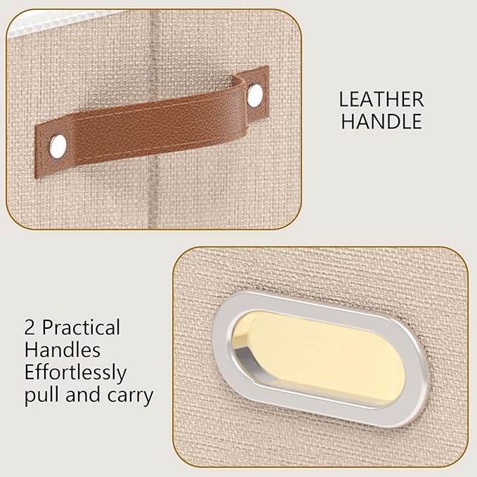 - Design of Storage Box Handle : Adds the vision of fabric storage bins, making it easier to lift the closet storage bins off the floor or pull out from a shelf to access your items, 1 handle is made of stainless steel, not easy to rust