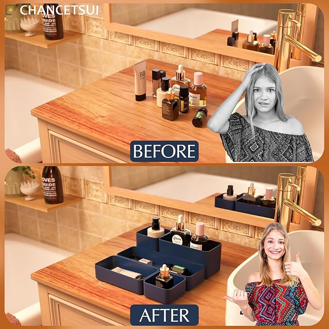 - [ LONG LASTING ] Made with quality plastic, a light weighted and easy to clean material that ensure the trays are built to last. The material makes the trays hard to break, keeping the organiser nice and steadily stacked.Customize your layout with individual bins in a bathroom, dresser, vanity, or desk.