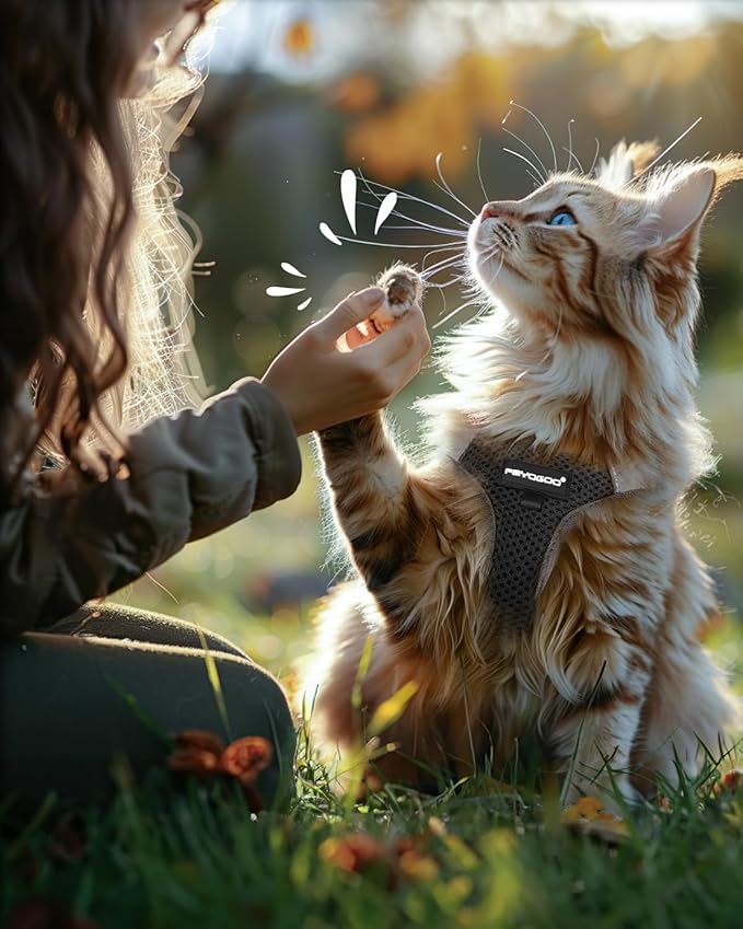 - CAT HARNESS ESCAPE PROOF: Our cat harness has a strong sticky velcro, so it can wrap cats tightly at 360 degrees. Coupled with the thick and firm webbing, which is not easy to break, double protection makes it difficult for cats to escape. 5ft leash enough distance to allow cats free movement and play on grass