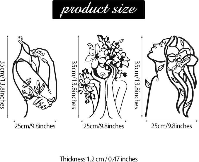 - Package Includes: you will get 3 pieces of abstract women's metal line art decorations in different styles, which are well packed during transportation, and the quantity is enough to meet your home decoration needs, which will make your bedroom, living room or other places full of elegant atmosphere and show your taste