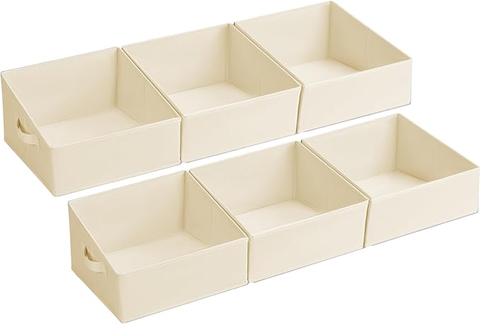 DIMJ Closet Storage Bins - Fabric Storage Baskets for Shelves, Collapsible Clothes Organizer with Handles for Purse, Toys, Books, Towel, Clothes, 6 Pack, Beige