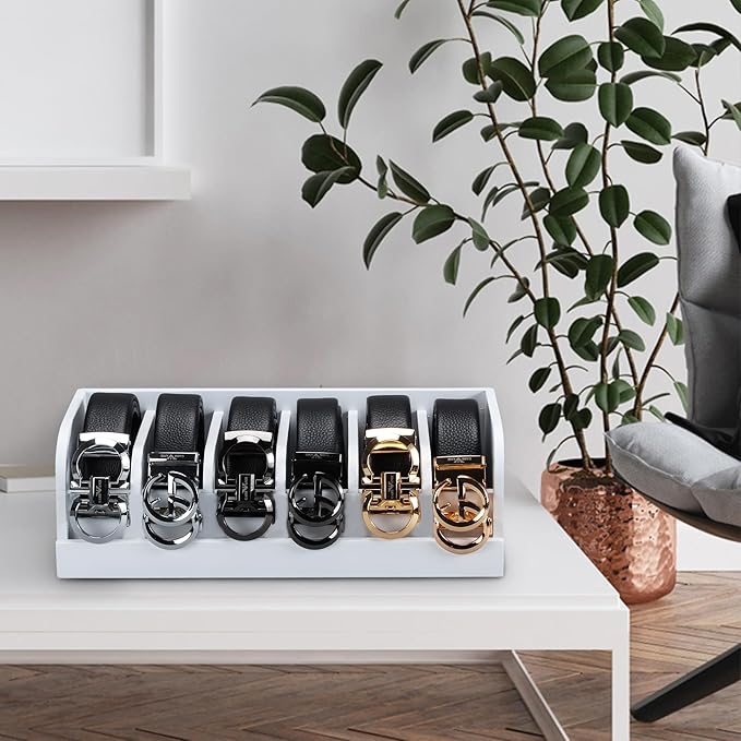MinBoo Bamboo Belt Rack, 6-Compartment Belt Organizer and Displayer for Closet and Drawer, Men and Women (White)