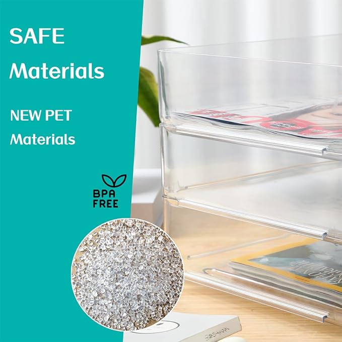 (4pcs Pack) HKeeper Stackable Paper Trays,Letter Tray Organizer,Office Desktop Organizer,A4 Paper Holder,Supplies Magazine,File Documents,Receipts(Clear,Regular)