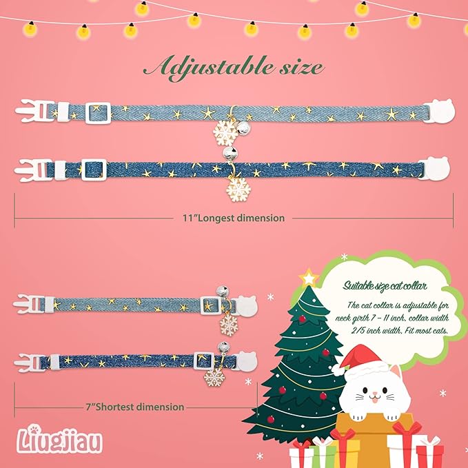 2 Pack Cotton Breakaway Cat Collar with Bell Dark Blue & Light Blue White Snowflake Pendant Cute Kitten Cat Collar Suitable for Girls and Boys
