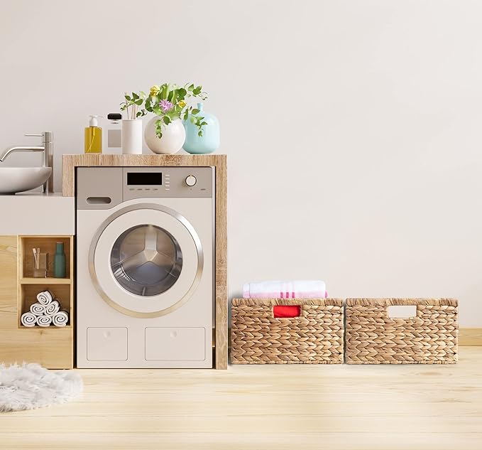 - ✅ IDEAL FOR YOUR HOME: Versatile woven basket for storing hand towels, toiletries in bath, or magazines, games, pet toys, media, household items.