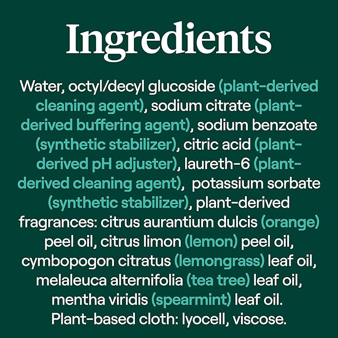 - Cleaning wipes with a lemon zest scent made from 100% essential oils and botanical ingredients