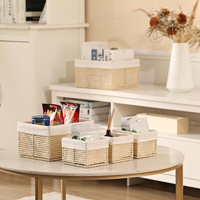 Vagusicc Wicker Storage Basket, Hand-Woven Paper Rope Basket, Rectangular Small Basket for Organizing, Cube Storage Bin for Closet/Clothes/Dresser, Beige, 5-Pack